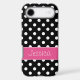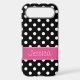 A preppy pink and black polka dot design is featured on this Samsung phone case. Easily personalise with your name.