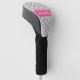 A cute pink and gray polka dot design is featured on this custom golf club head cover. Makes a wonderful golfing gift for her. Easily personalize with a name using the online template tools.