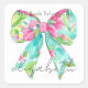 Preppy Pink and Green Bow Personalised Bookplate Square Sticker