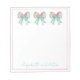 This cute personalised notepad features three bows in preppy shades of pink and green. Personalise with your choice of name. Great for back to school or for a personalised gift bag!