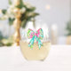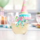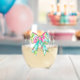 This cute personalised stemless wine glass features a large bow in preppy shades of pink and green and the name in black on the front and three bows and text on the back.. Personalise with your choice of name and special text. Great for a personalised gift bag or girl's weekend.