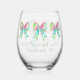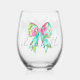 Preppy Pink and Green Bows Personalised Stemless Wine Glass