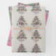 This preppy holiday gift wrap sheet set features beautiful pink and green Christmas trees in decorative Chinoiserie pots.