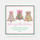 These cute Christmas holiday party paper napkins feature three preppy Christmas trees in girly shades of pink and green with fun bows at the top. Personalize with your choice of special holiday message.