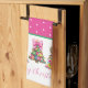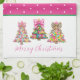 Preppy Pink and Green Christmas Trees Tea Towel