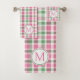 Preppy Pink and Green Plaid Monogram Bath Towel Set