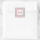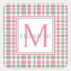 Preppy Pink and Green Plaid Monogram Square Sticker