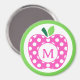 Preppy Pink and Green Polka Dot Apple Monogram Magnet