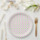 Preppy Pink and Green Polka Dots on White Paper Plate