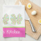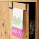 This preppy personalised kitchen dish towel features bright pink and green stripe bows. Personalise with your choice of name or special text. Fun for any occasion. Great for gift bags and housewarming parties.
