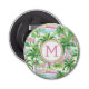 This cute monogrammed button bottle opener features a tropical palm tree pattern in preppy pink and green. Personalise the monogram with your choice of initial.