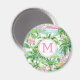 Preppy Pink and Green Tropical Palm Trees Monogram Magnet