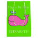 Preppy Pink and Green Whales Personalised Medium Gift Bag