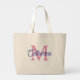 Preppy Pink and Navy Blue Simple Monogram Large Tote Bag