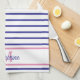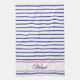 Preppy Pink and Navy Blue Stripe Simple Monogram Tea Towel