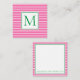 Preppy Pink and White Stripe With Green Monogram Card
