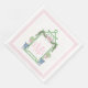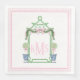 This napkin design has a Preppy Chinoiserie design featuring a green bamboo pagoda frame with a garland and a pink bow and two topiaries in Chinoiserie pots. You can personalise with your monogram.