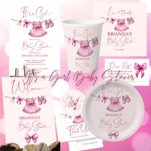 Preppy pink clothes on a line girls baby showerDesigned by Ieva Jenciute