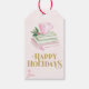 Preppy Pink Coffee & Books Happy Holidays gift tag