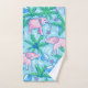 This preppy elephant bath towel will dry hands in stylish way. This pink elephant, palm tree, coconut pattern in pink, green and blue can be found on other items in my shop, PageCreativeDesigns.