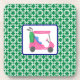 Preppy Pink Golf Cart Green White Link Pattern Coaster