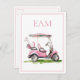 Preppy Pink Golf Cart Monogram Postcard