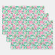Preppy Pink & Green Christmas Flowers & Bows Wrapping Paper Sheet