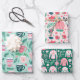 Preppy Pink & Green Christmas Mugs Sweaters & Hats Wrapping Paper Sheet