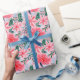 Preppy Pink & Green Christmas Poinsettias Wrapping Paper