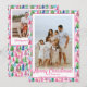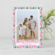 Preppy Pink & Green Christmas Tree Custom Photo Holiday Card