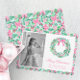 Preppy Pink & Green Palm Beach Wreath Photo Holiday Card