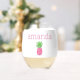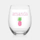 Preppy Pink Pineaaple Personalised Stemless Wine Glass
