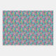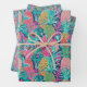 This beautiful gift wrap sheet set features a preppy pattern of pineapples in shades of pink, teal and navy blue in different sizes.