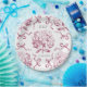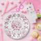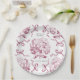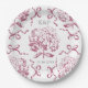 Preppy Pink Toile Hydrangea Bow with Name Paper Plate
