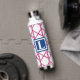 Preppy Pink Trellis Bamboo Pattern Navy Monogram Water Bottle