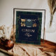 A charming baby shower table sign featuring classic green and navy plaid with a teddy bear and preppy baby clothes. A simple, timeless detail for an elegant celebration.