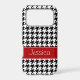 A preppy red and black houndstooth pattern is featured on this iPhone case. Easily personalise with your name!
