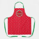 This very preppy holiday apron featured classic white polka dots on a background of bright red with green straps. Personalise the matching red and green monogram with your choice of name and initial. Makes a great Christmas hostess gift.
