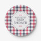 Preppy Red, White & Blue Plaid Baby Shower Paper Plate
