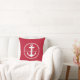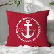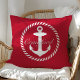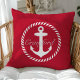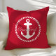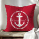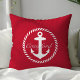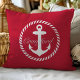 Preppy Red & White Nautical Anchor Monogram Cushion