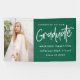 Celebrate the grad with a custom graduation banner! The personalised graduation banner features the graduate's photo paired with the phrase "Congrats to our Graduate" in white lettering with a green background (or colour of your choice). Personalise the photo graduation banner by adding the graduate's name, school name, and graduation year.