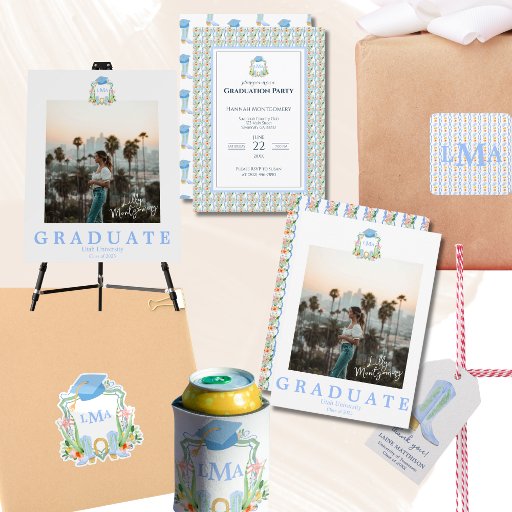 Preppy Southern Cowgirl Monogram Graduation Party Can Cooler - personalise this graduation can cooler to celebrate completion of school. Add the graduate's monogram to the crest. Or personalise for any celebratory event. All text customisable.