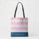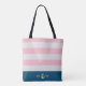 Preppy Striped Pastel Blush Monogram Tote Bag
