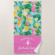 This can beach towel design features a Preppy Summer Tropical Cocktail print. You can personalise with the bride's name, year and location. These towels are perfect for a bachelorette party or girl's weekend.