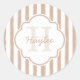 Preppy Tan Painted Stripes Monogram and Name Classic Round Sticker