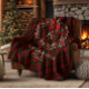 Preppy Tartan Holiday Wreath Monogram & Name Sherpa Blanket