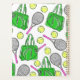 This green tennis bag with tennis racquets and balls patterned planner will keep you organised. The tennis design has green tennis bags, pink handled racquets, and yellow tennis balls. This green tennis bag design can be found on other items in my store, PageCreativeDesigns.