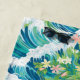 This can beach towel design features a preppy tropical beach waves print with flowers floating on the waves. You can personalise with your Family name or your Air BNB name. These towels are perfect for a beach vacation home or rental.