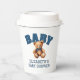 The clean navy varsity typography and lovable teddy bear graphic create a polished yet playful look that complements a wide range of party themes, including preppy baby showers, varsity baby shower themes, classic teddy bear baby showers, and modern boy baby celebrations. Whether placed at dessert tables, drink stations, or guest place settings, these paper cups add a coordinated and elevated detail to your event.