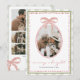 Add a touch of preppy charm to your holiday greetings with this vintage-inspired pink bow Christmas card. The front showcases your family photo framed in a whimsical hand-drawn design topped with a sweet pink bow. The back offers space for four additional photos and a short heartfelt message—perfect for sharing your year’s best moments in a stylish, memorable way